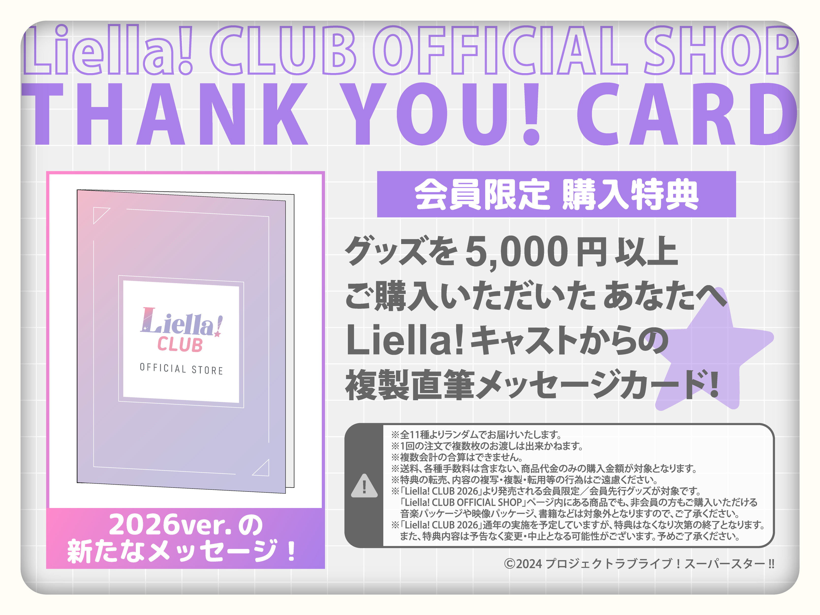 Liella! CLUB 2026から発売される会員限定/会員先行販売グッズを1会計につき「税込5,000円」以上お買い上げいただいた方に、